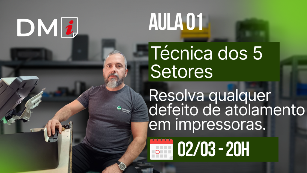 Uma aula prática onde você vai aprender um método organizado para diagnosticar atolamentos em impressoras laser sem tentativa e erro. A técnica dos 5 setores mostra exatamente onde procurar o defeito, reduz retrabalho, evita troca desnecessária de peças e transforma sua forma de diagnosticar — com mais precisão e profissionalismo.
